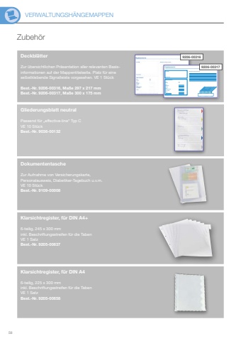 VERWALTUNGSH%u00c4NGEMAPPEN58Deckbl%u00e4tterZur %u00fcbersichtlichen Pr%u00e4sentation aller relevanten Basisinformationen auf der Mappentitelseite. Platz f%u00fcr eine selbstklebende Signalleiste vorgesehen. VE 1 St%u00fcckBest.-Nr. 9206-00316, Ma%u00dfe 297 x 217 mmBest.-Nr. 9206-00317, Ma%u00dfe 300 x 175 mmGliederungsblatt neutralPassend f%u00fcr %u201eeffective-line%u201c Typ CVE 10 St%u00fcckBest.-Nr. 9036-00132DokumententascheZur Aufnahme von Versicherungskarte, Personalausweis, Diabetiker-Tagebuch u.v.m.VE 10 St%u00fcckBest.-Nr. 9109-00008Klarsichtregister, f%u00fcr DIN A4+6-teilig, 245 x 300 mminkl. Beschriftungsstreifen f%u00fcr die Taben VE 1 SatzBest.-Nr. 9205-00637Klarsichtregister, f%u00fcr DIN A46-teilig, 225 x 300 mminkl. Beschriftungsstreifen f%u00fcr die TabenVE 1 SatzBest.-Nr. 9205-00658F%u00fcr Sie t%u00e4tig: Wichtige Hinweise f%u00fcr Pflege/med. BetreuungIhr Ansprechpartner: Wichtige TelefonnummernPolizeiFeuerwehrNotarztRettungsdienstHausnotrufBetreuerPhysikalische TherapieEssen auf R%u00e4dernSeelsorge110112Pflegedokumentation f%u00fcr:Pflegebericht/Tagesereign.Hauswirtschaftliche Betr.Arzt/KontaktMedikationVitalwertePflegeanweisungPflegeplanung%u00a9 2011 BOI-DOKUTECH GmbH - Coburg - Nachdruck verboten - Bestell-Tel.: 09561/2707 24 %u00b7 Bestell-Fax: 09561/2707 29 %u00b7 www.boi.de %u00b7 Best.-Nr.: 9206-00317 ID-Nr: 9206-00317VER004/12/10/mo/10/9/8/7/6/5/4/3/2/1Zubeh%u00f6r9206-003169206-00317
