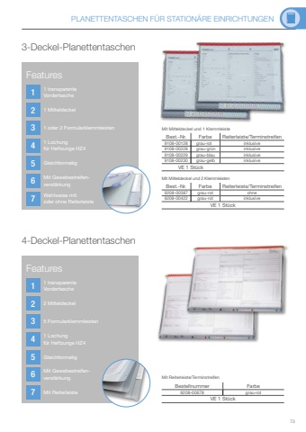 PLANETTENTASCHEN F%u00dcR STATION%u00c4RE EINRICHTUNGEN73123456712345674-Deckel-Planettentaschen3-Deckel-PlanettentaschenBest.-Nr. Farbe Reiterleiste/Terminstreifen9208-00387 grau-rot ohne9208-00422 grau-rot inklusiveVE 1 St%u00fcckBest.-Nr. Farbe Reiterleiste/Terminstreifen9108-00128 grau-rot inklusive9108-00228 grau-gr%u00fcn inklusive9108-00229 grau-blau inklusive9108-00230 grau-gelb inklusiveVE 1 St%u00fcckMit Mitteldeckel und 2 KlemmleistenMit Mitteldeckel und 1 KlemmleisteBestellnummer Farbe9208-00678 grau-rotVE 1 St%u00fcckMit Reiterleiste/TerminstreifenFeatures1 transparente Vordertasche2 Mitteldeckel5 Formularklemmleisten1 Lochung f%u00fcr Heftzunge HZ4GleichformatigMit Gewebestreifenverst%u00e4rkungMit ReiterleisteFeatures1 transparente Vordertasche1 Mitteldeckel1 oder 2 Formularklemmleisten1 Lochung f%u00fcr Heftzunge HZ4GleichformatigMit Gewebestreifenverst%u00e4rkungWahlweise mit oder ohne Reiterleiste