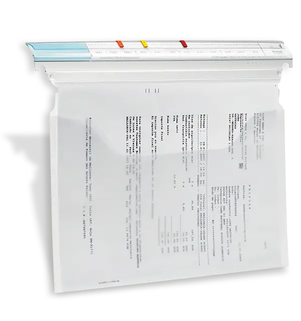 • Hängemappe mit 2 Schienen, oben und seitlich offen