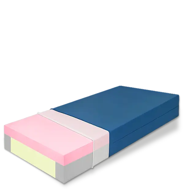 Der Oberbau besteht aus einem 4 cm hohen viscoelastischen Schaum. In Kombination mit einem hochwertigen Schaumstoff im Unterbau ermöglicht die Matratze eine gute Druckreduzierung und unterstützt dennoch die Eigenbewegungen des Patienten.