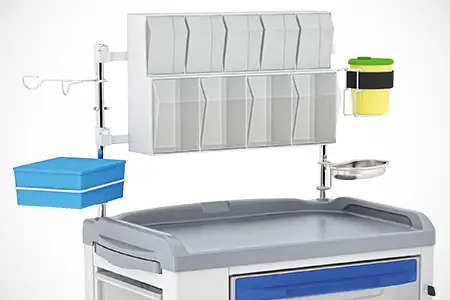 Personalisierbare Ablageflächen: Individuell anpassbare Ablageflächen und Halterungen für medizinische Geräte und IT-Equipment sind wichtig, um unterschiedliche Arbeitsabläufe zu unterstützen.