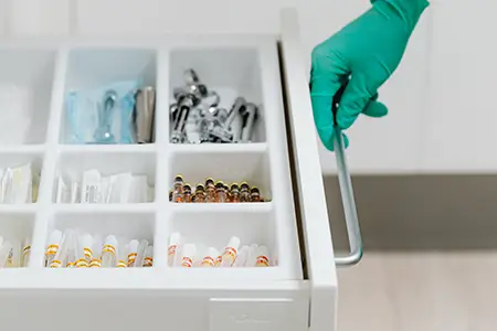 Individualisierung: umfangreiches Zubehörprogramm, z.B. ABS-Top, Normschienen, Überbau, Desinfektionsmittelspender, Handschuhboxen, Abwürfe und vieles mehr