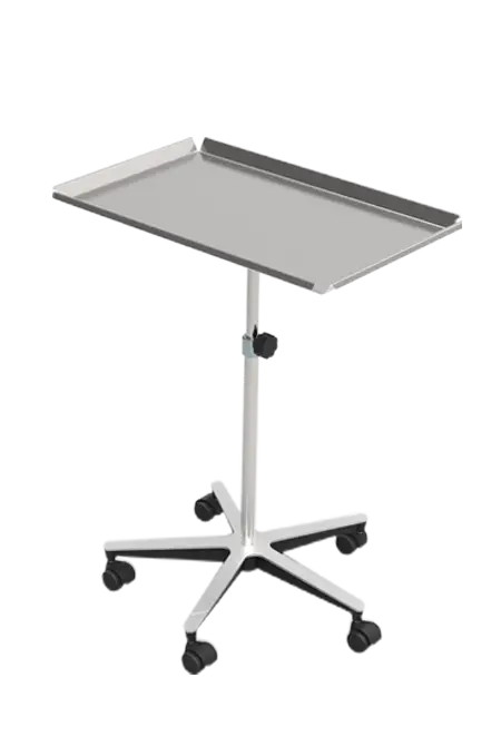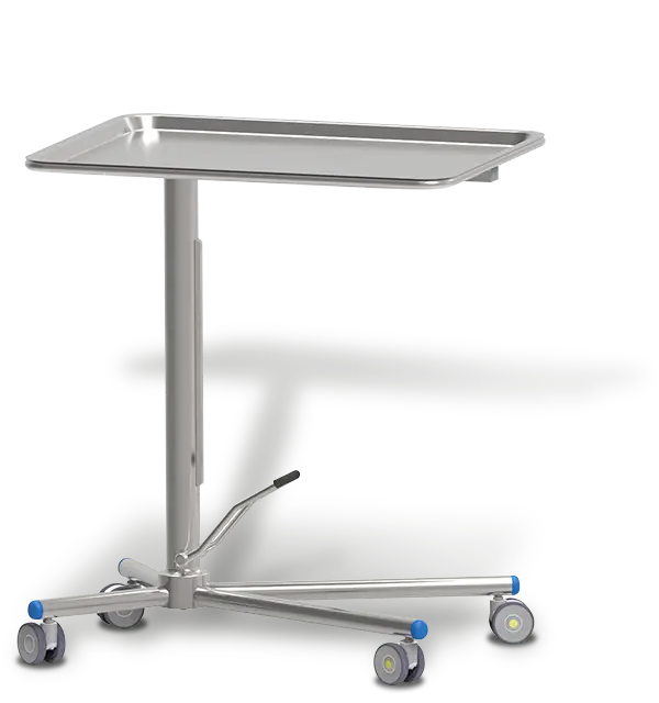 Die praktische Zugänglichkeit und die optionale Sicherung durch Feststellbremsen erhöhen die Funktionalität dieser Wagen und Tische, die als mobile Ablageflächen dienen und somit eine flexible Ergänzung im OP-Bereich darstellen. Einige Modelle der Mayo-Instrumententische verfügen zudem über Hydraulikpumpen, die eine einfache Höhenverstellung ermöglichen und so eine ergonomische Arbeitsweise unterstützen.