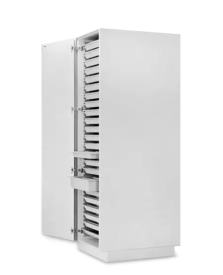 Ideal für Anwendungen, bei denen offene Regale aus Hygiene- oder Sicherheitsgründen nicht eingesetzt werden können, die Vorteile des ISO-Modulsystems aber dennoch wichtig sind.